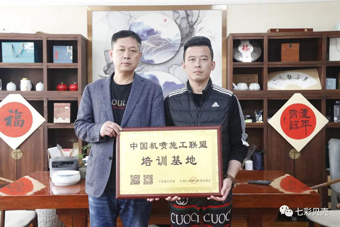 培訓結束后,七彩貝殼香港集團有限公司總經理郭成為濰坊佳多麗建設工程配套有限公司進行授牌,授予佳多麗公司“中國機噴施工聯盟培訓基地”。